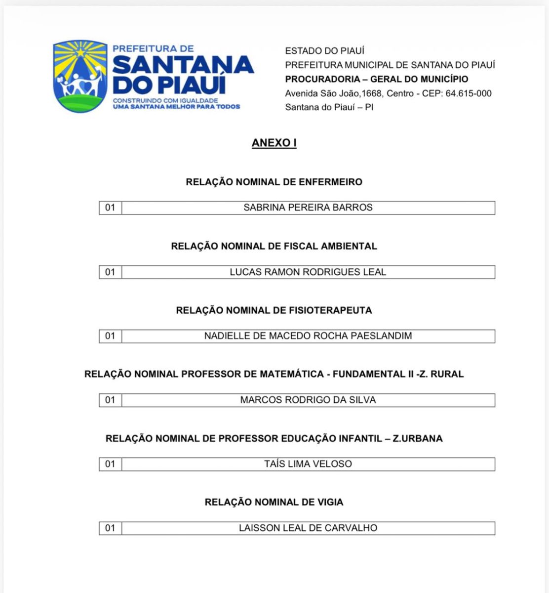 A Prefeitura de Santana do Piauí convocou os candidatos aprovados em concurso público para o ato de posse nos cargos efetivos no município. A solenidade acontecerá às 10h, na sede da Procuradoria Geral do Município, localizada no prédio do Executivo Municipal.