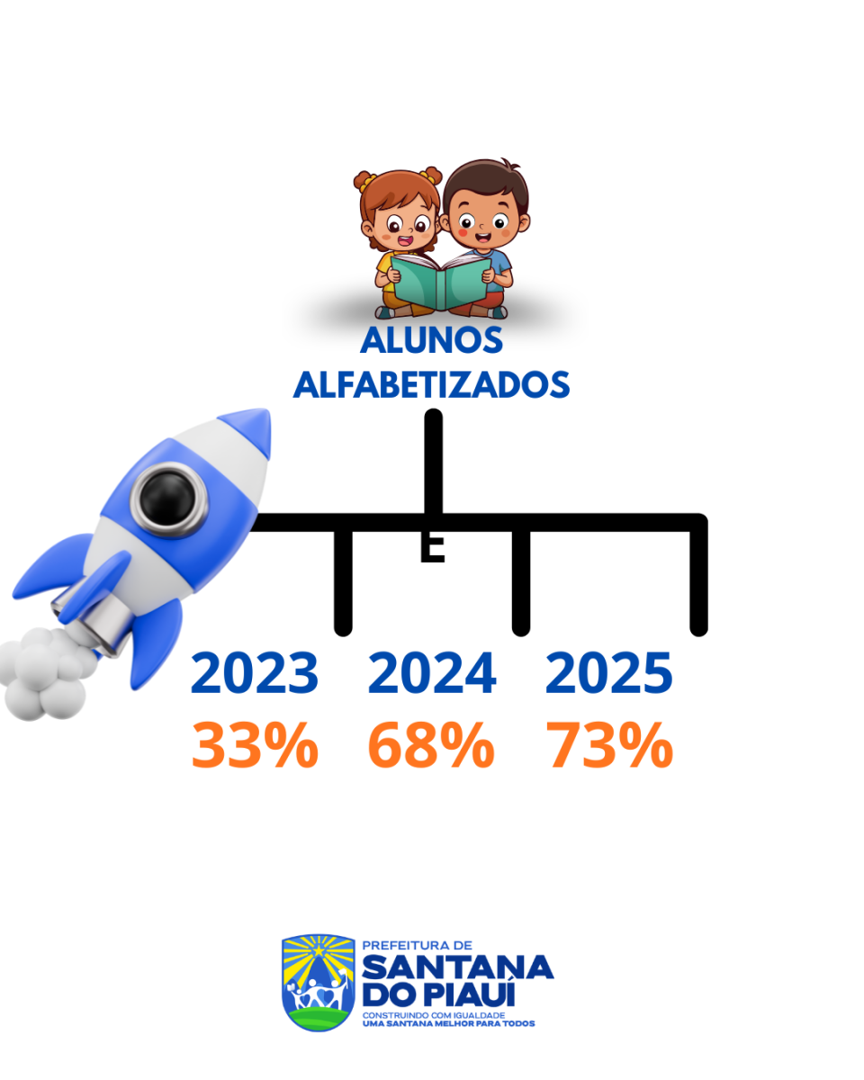 O município de Santana do Piauí alcançou um marco importante na área da educação ao registrar um crescimento expressivo no índice de crianças alfabetizadas. Em 2025, o percentual chegou a 73%, representando um salto significativo de 7,35% no último ano e um aumento recorde de 121% no período entre 2023 e 2025.