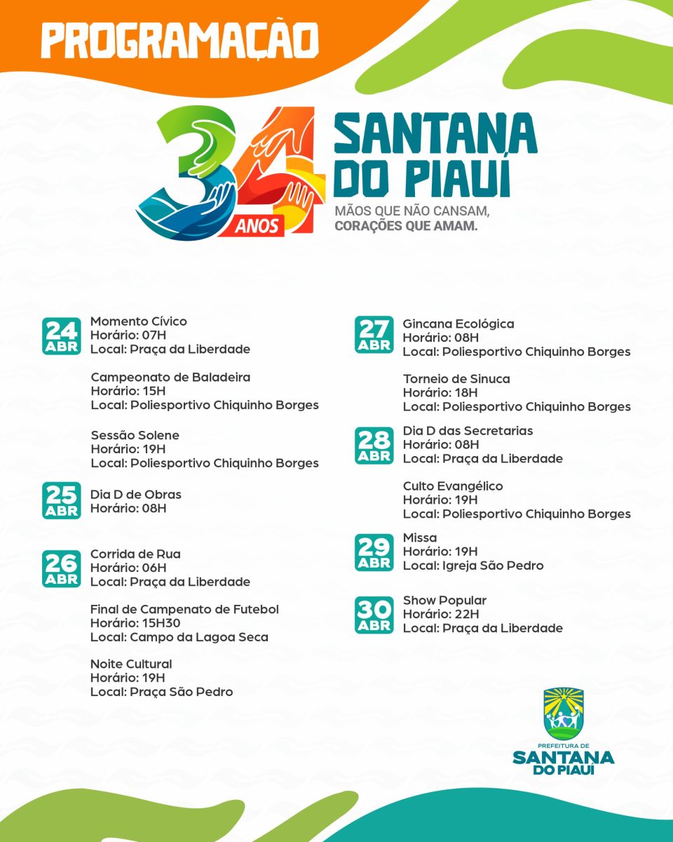 “Quero convidar toda a população de Santana do Piauí para participar conosco deste momento tão especial. Preparamos uma programação com muito carinho, que valoriza nossa história, nossa cultura e o nosso povo. Venham celebrar esses 34 anos de conquistas e desenvolvimento.”